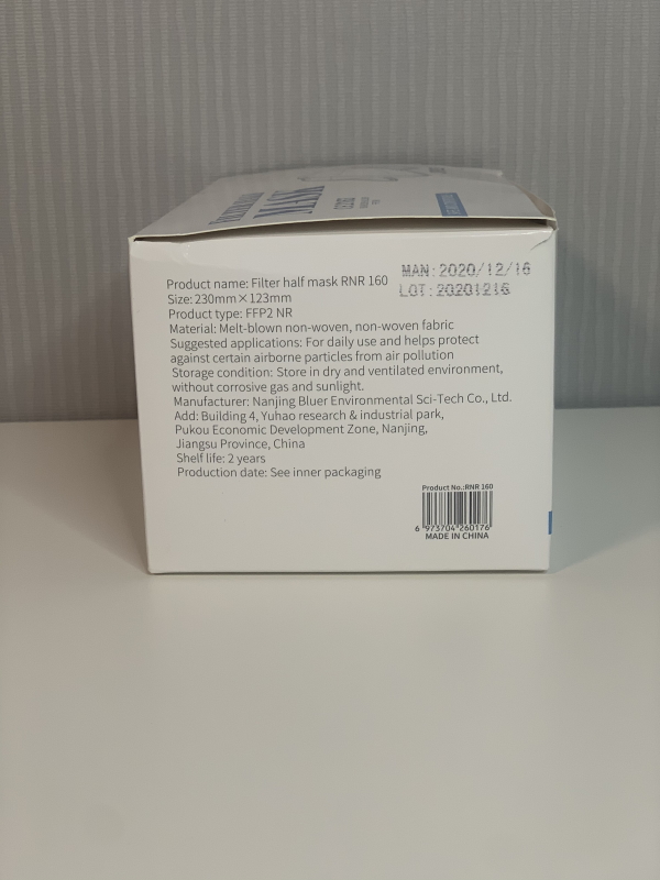- Standard: FFP2 NR mit EN149:2001+A1: 2009, CE2163